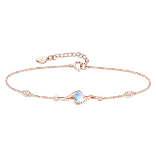 Naniwaai ブレスレット レディース 6月 ムーンストーン 誕生石 ブレスレット 人気 シルバー ローズゴールドメッキ 金属アレルギー対応 派手 花 記念日 母の日 誕生日 長さ調整可能 プレゼント (6月)