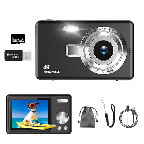 - QZT デジタルカメラ 4K デジカメ 小型カメラ 6400万画素 タイムプラス録画機能 2.8インチ大画面 オートフォーカス 18倍デジタルズーム セルフタイマー ループ録画 LEDライト USB充電式 コンパクト ウェブカメラ機能 軽量 修学旅行/子供カメラ/初心者/入学式 三脚穴付き 日本語取扱説明書付き 32gカード付属5,174円
