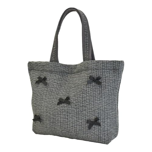 [ケータイ屋24] ヌビバッグ マザーズバッグ 韓国製 直輸入 綿100% トートバッグ ヌビ 刺繍 レディース イブル キルト 可愛い 肩掛け 大容量 軽量 出産祝い チャコール×黒リボン Mサイズ