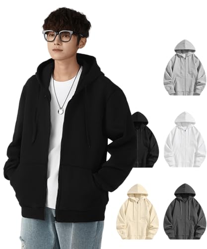 - Sukinana 12.4oz パーカー メンズ 裏起毛 長袖 ゆったり ジップフーデッドスウェットシャツ 大きいサイズ 内側ポケット付き ベーシック プルオーバー 無地 シンプル カジュアル 男女兼用 複数色選び 春秋冬 (JP, アルファベット, XL, ブラック)3,128円〜