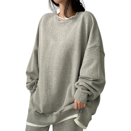 [Leadamon-oee] トレーナー レディース ゆったり スウェット ロングパーカー 大きいサイズ チュニック プルオーバー トップス 長袖 人気 オーバーサイズ フェイクレイヤード 無地 体型カバー 韓国 ファッション 通勤 部屋着 春 秋 冬物