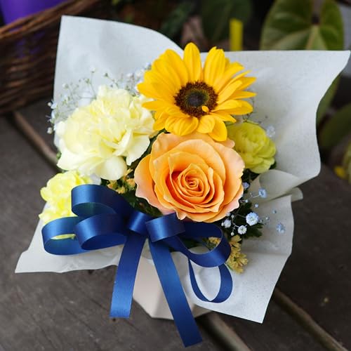 - 【クール便】 黄色・青系でおまかせフラワーアレンジメント (ラウンドタイプ) アレンジメントフラワー アレンジメント ギフト 生花 花 プレゼント 誕生日 結婚記念日 お祝い 開店祝い 還暦 母の日 ペット お供え 黄色 (イエロー・ブルー)3,980円