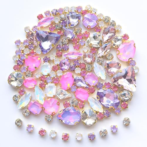 - ビジューパーツ デコパーツ ガラス製形状&サイズ&カラーアソートパック ミックス カラフル 台座付き 約100粒 ビジュー パーツ 福袋 ラインストーン ダイヤ 爪付き ガラスストーン 宝石 レジン 封入 ピアス 資材 アクセサリーパーツ 手作り 材料 ハンドメイド 卸 手芸935円