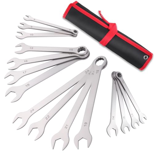 LEONTOOL コンビネーションレンチ 薄型 薄型コンビネーションレンチセット 15本組 ミリ規格8-24mm 薄口コンビネーションレンチ 軽量 極薄 片目片口スパナ ロングパネルレンチセット 薄型スパナセット 12角 メガネ部15° コンビネーションスパナ 3mmスリムレンチセット トルクレンチセット 締め付け 緩め作業 バイク 車メンテナンス 組み立て DIY 収納ポーチ付き