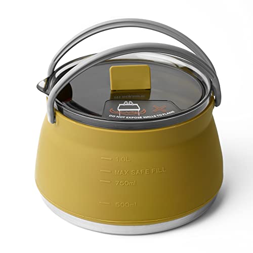 キャンプ ケトル やかん アウトドア 調理器具 キャンプ用鍋 たためるケトル ポータブル 折りたたみ式 シリコンケトル ティーポット コーヒーポット 1リットル アースイエロー 容量:1L キャンプ用品 キャンプケトル 屋外 登山 防災 湯沸かし器 高温耐性 高速熱伝導 火傷防止 滑り止め 軽量 携帯便利 旅行 野外活動 折りたたみティーケトル