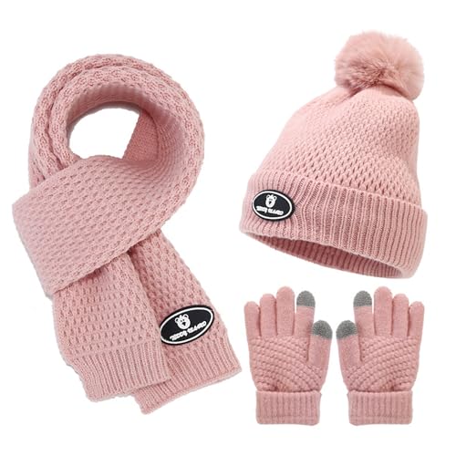 - Kazumiya キッズ 帽子 手袋 マフラー 三点セット ニット 子供 1-5歳 耳当て付き 秋冬 暖かい 可愛い 防寒防風 女の子 男の子 クリスマス お誕生日プレゼント (ピンク, M)