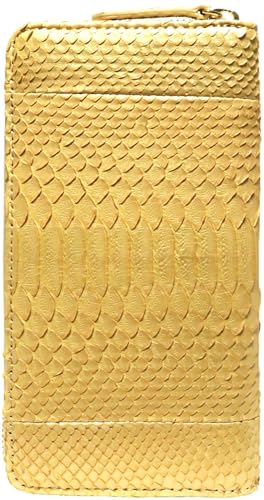 - [MGsable] 長財布 蛇革 ラウンドファスナー 本革 金運祈願 開運アイテム ヘビ パイソン レディース メンズ 風水 金 白 人気 大容量 本皮 サイフ 男女兼用 ギフト 【ゴールド】10,000円