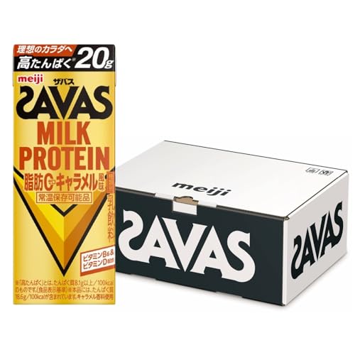 - SAVAS(ザバス) MILK PROTEIN 脂肪0 キャラメル風味 200ml×24本 たんぱく20g 明治 ミルクプロテイン4,068円〜
