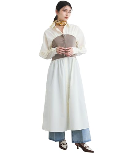 - [ビス] ワンピース 【選べる着丈】【前後2WAY】 無地&花柄ウエストベルトシャツワンピース レディース BVE12710 ベージュ F2,739円