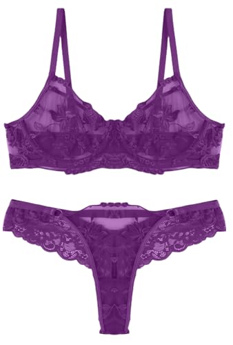 - [Maeau] ブラジャー ショーツ セット レース 下着 レディース インナー セクシー 女性 刺繍 花柄 シースルー パッドなし ブラ 透け感 薄い 美乳 ランジェリー ワイン XL2,289円〜