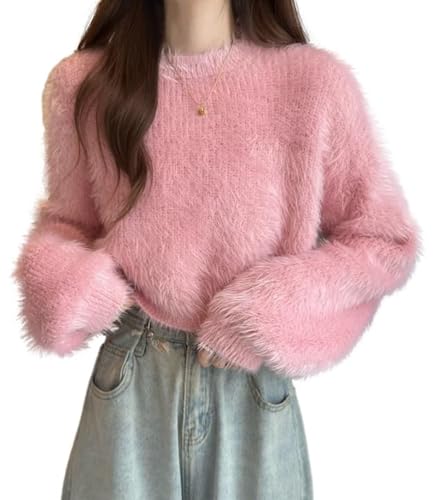 - [1/2plus] ニブンノイチプラス セーター ニット ショート 丈 モヘア ファジー もこもこ ふわふわ シャギー ラウンド 丸首 レディース (ピンク.L)3,180円