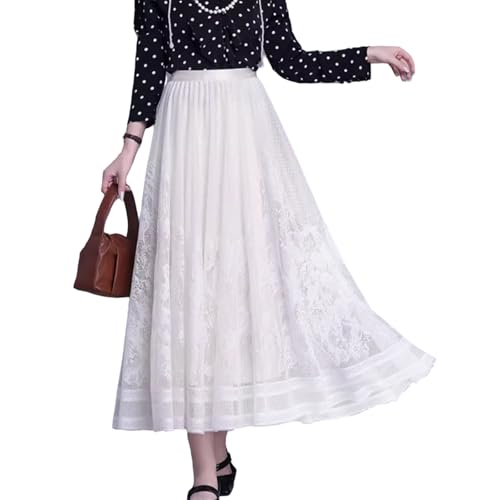 [MlleeSSeeldyTRC] スカート レディース ロングスカート レース プリーツ ハイウエスト Aライン 裏地付き ボトムス 無地 ゆったり 大きいサイズ 体型カバー 普段着 デート 春 夏 秋