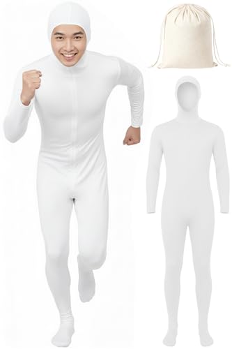 [BAFUEVD] 全身タイツ コスチューム コスプレ 前開きジッパー&専用収納袋付属 7色展開 顔部分が開いている 柔軟通気 ストレッチ コスプレ衣装 ハロウィン 仮装 ハロウィンパーティー 男女兼用 大人用 学園祭 歓迎会 文化祭(ホワイト, XL)