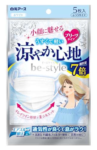 - [ビースタイル] 5個セット 白元アース プリーツタイプ 涼やか心地 アイスラベンダー 5枚入 マスク978円〜