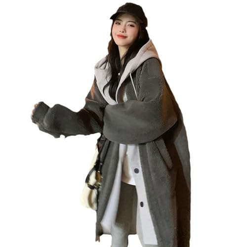 レイヤードボアコート ロングボアコート ボアブルゾン ロング丈 フーディージップアップ ラムズウール製フード付きコート 暖かい 防寒 長袖 コート フリースジャケット カジュアルもこもこ 防寒 レディース カジュアル 秋冬 L グレー