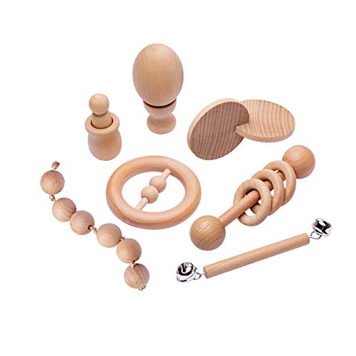 Promise Babe おもちゃ 赤ちゃん 7点セット モンテッソーリ がらがら ラトル 天然木 無塗装 知育玩具 指先訓練 音感受教育 赤ちゃん 子供 出産祝い 誕生日贈り物 誕生日プレゼント 「ボックス付き」