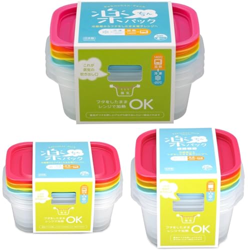 イノマタ化学 電子レンジ容器 楽ちんパック 蓋をしたままレンジ可能 角型 180ml 4個セット カラフル 9802