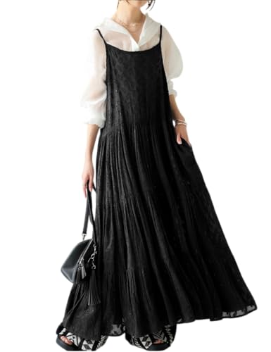 - [antiqua] アンティカ インド綿 柄 キャミワンピ ワンピース レディース IYA-00010 Plus(L-XXL相当) 05 ブラック5,940円