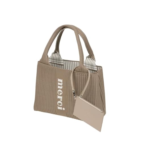 [qbag paris] トリコット プチ トートバッグ 【軽量/大容量/自立/洗える】 おしゃれ 可愛い ミニ トート ニットバッグ 小さめ レディース トート 通勤 通学 韓国 かばん 鞄 バッグ ハンドバッグ (ラテ)