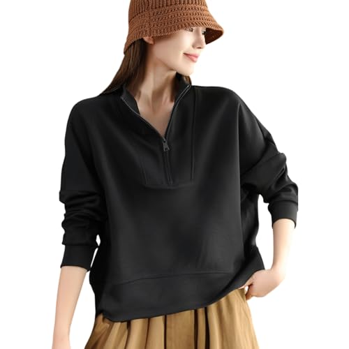 [AUSKY] トレーナー パーカー レディース スウェット 長袖 立ち襟 ハーフジップ トップス コットン混紡 無地 シンプル カジュアル ゆったり 着瘦せ 体型カバー 普段着 万能アイテム 通勤 部屋着 春 秋 冬