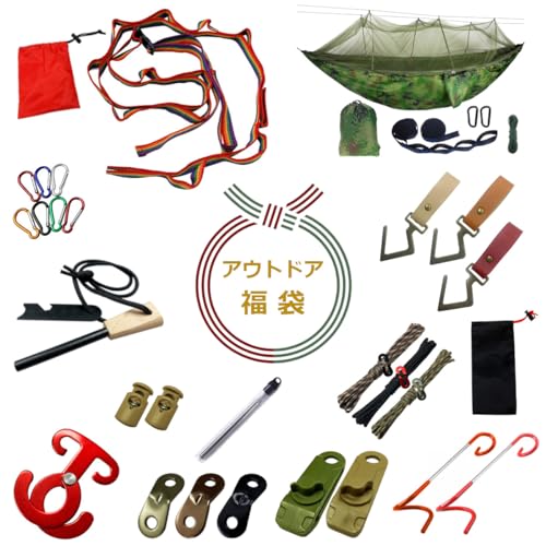 - アウトドア 福袋 2025 送料無料 キャンプ レディース メンズ カモフラ 迷彩 黒 防災 サバイバル 火打ち石 ハンモック パラコード ランタンハンガー タープクリップ3,980円