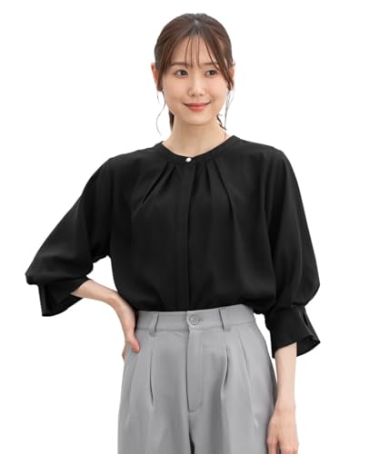 - トップス ブラウス 6分袖 ノーカラー バンドカラー きれいめ 通勤 オフィス レディース 夏 Honeys ハニーズ ボリューム袖ブラウス2,480円