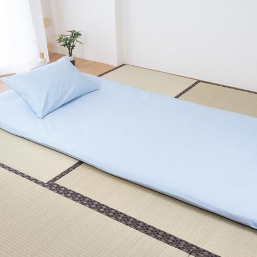 - ワンタッチシーツ シングル 綿100% 105×205cm 敷き布団カバー 和式 無地 ホワイト ブルー 洗える コットン100% 敷布団カバー 送料無料1,720円
