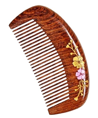 - 櫛 檀木櫛 コーム 天然木製 ヘアコーム サラサラ 静電気防止 絡まない 頭皮マッサージ ヘアブラシ コンパクト 携帯便利 彫刻櫛 ヘアケア レディース 恋人 母の日 プレゼント 男女兼用 ブラウン 細目999円〜