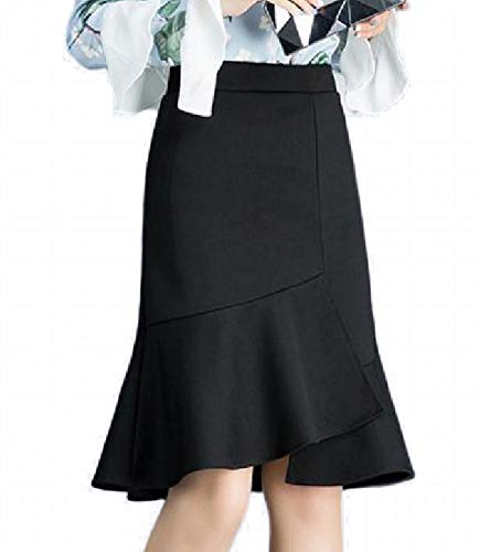 [toasoa] マーメイド スカート ひざ丈 フレア タイト 春 夏 秋 冬 きれいめ 膝丈 膝下 かわいい ぺプラム フィッシュテール オフィス レディース ファッション (09 - 黒 - M)